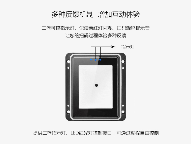 此款二維碼讀頭適用于研騰門禁系統二維碼開門,讀頭機身采用進口PC,面板采用鋁合金,適讀窗采用鋼化玻璃。超快掃描100次/秒;超強的識讀能力,可快速識別紙質,屏幕,DPM二維碼。