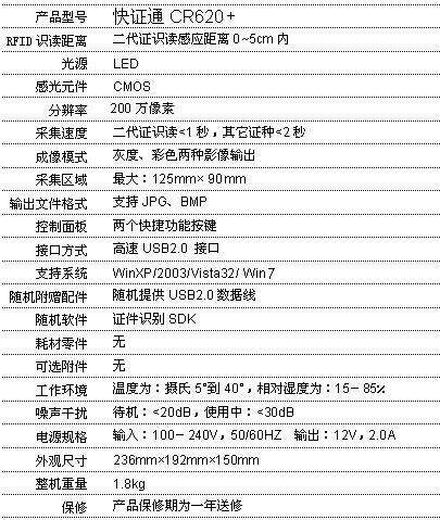 •  快證通證件采集儀CR620+,集二代證芯片讀取及其他證件成像識別為一體,滿足了目前市場證件信息采集的現實需求。